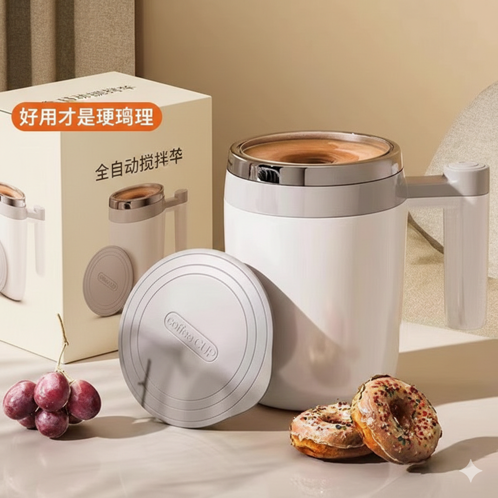 Experience the Ultimate Convenience with the DTM-630 Automatic Stirring Mug Stop searching for spoons! Whether you’re at the office, relaxing in your living room, or camping outdoors, the DTM-630 Self-Stirring Mug is your perfect beverage companion. This modern, minimalist mug is designed to blend your favorite drinks—like coffee, milk tea, and hot cocoa—into a smooth, delicious mixture in seconds.
